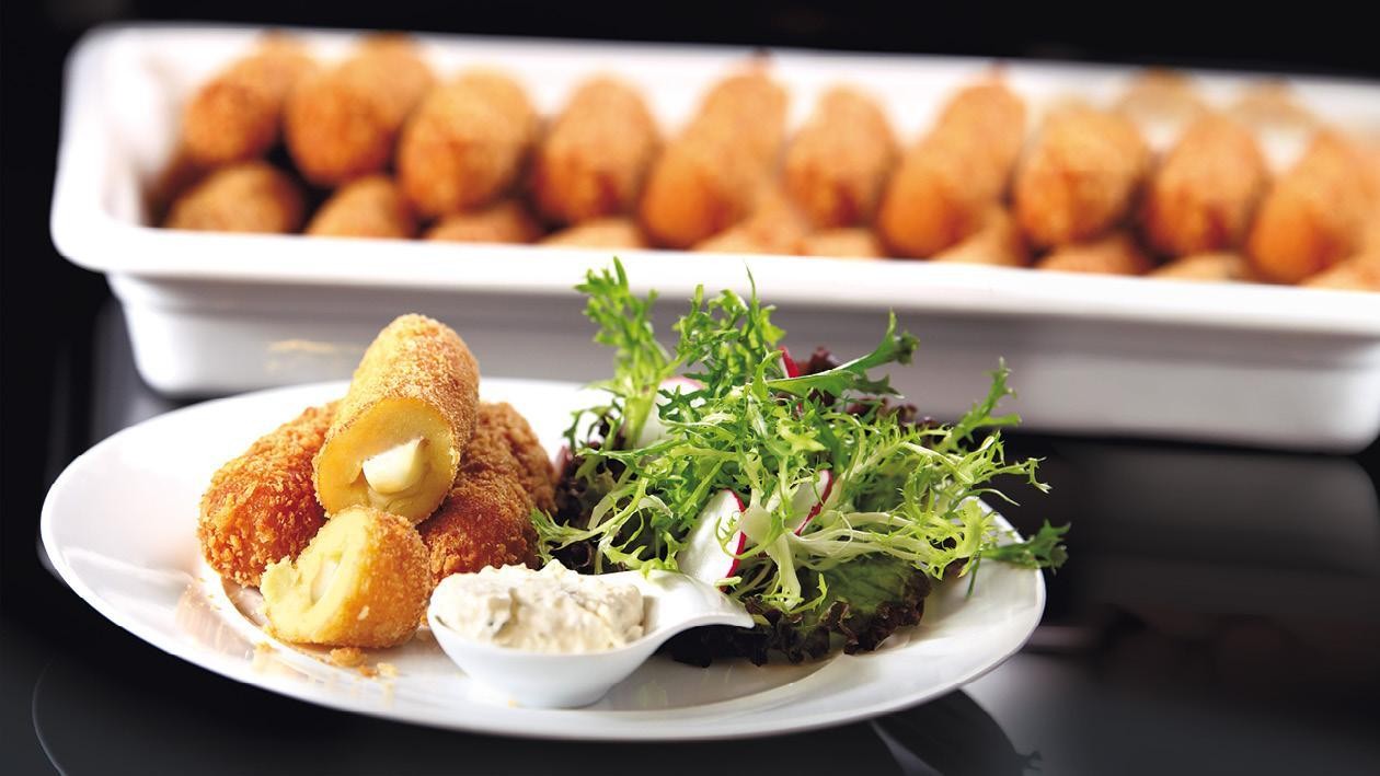 Krokety podávajte s kytičkou šalátu a porciou omáčky.